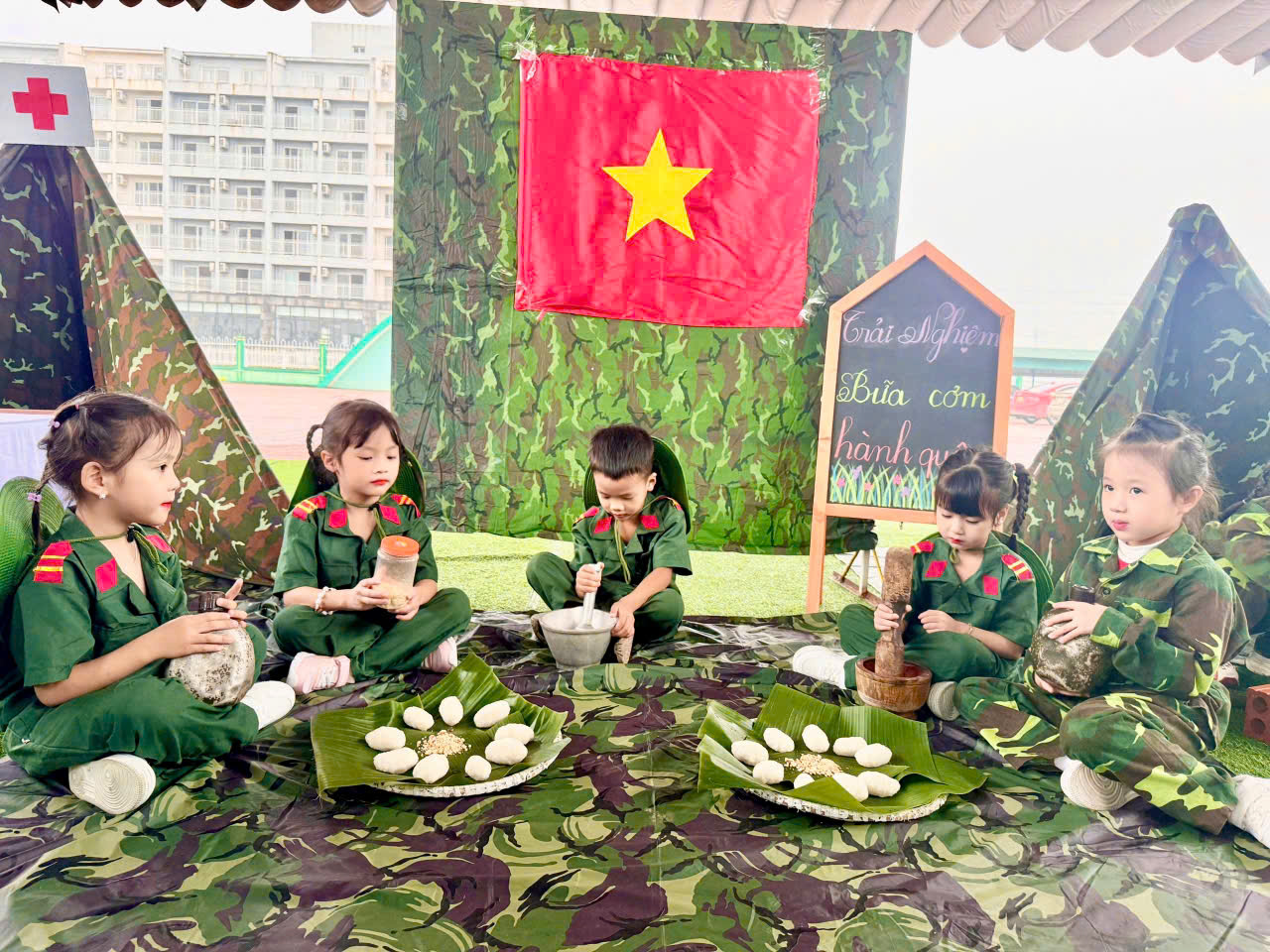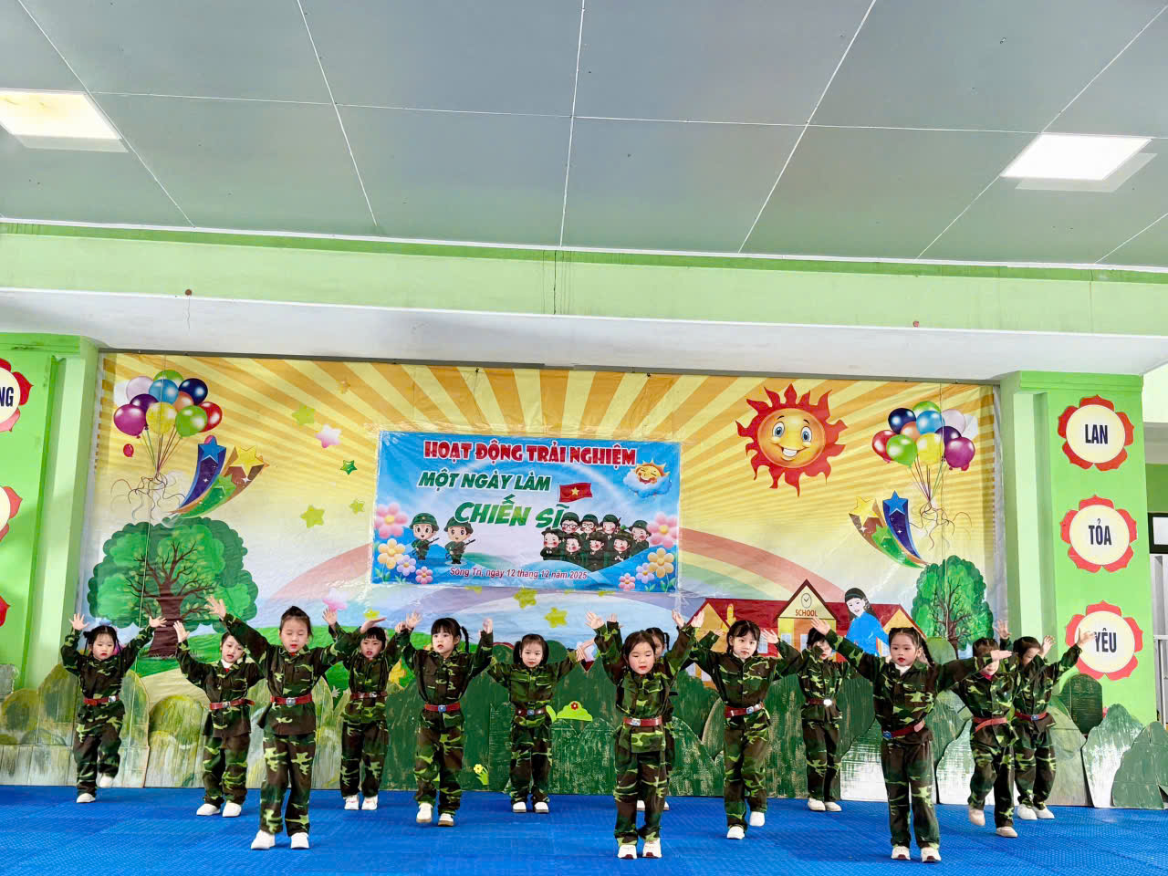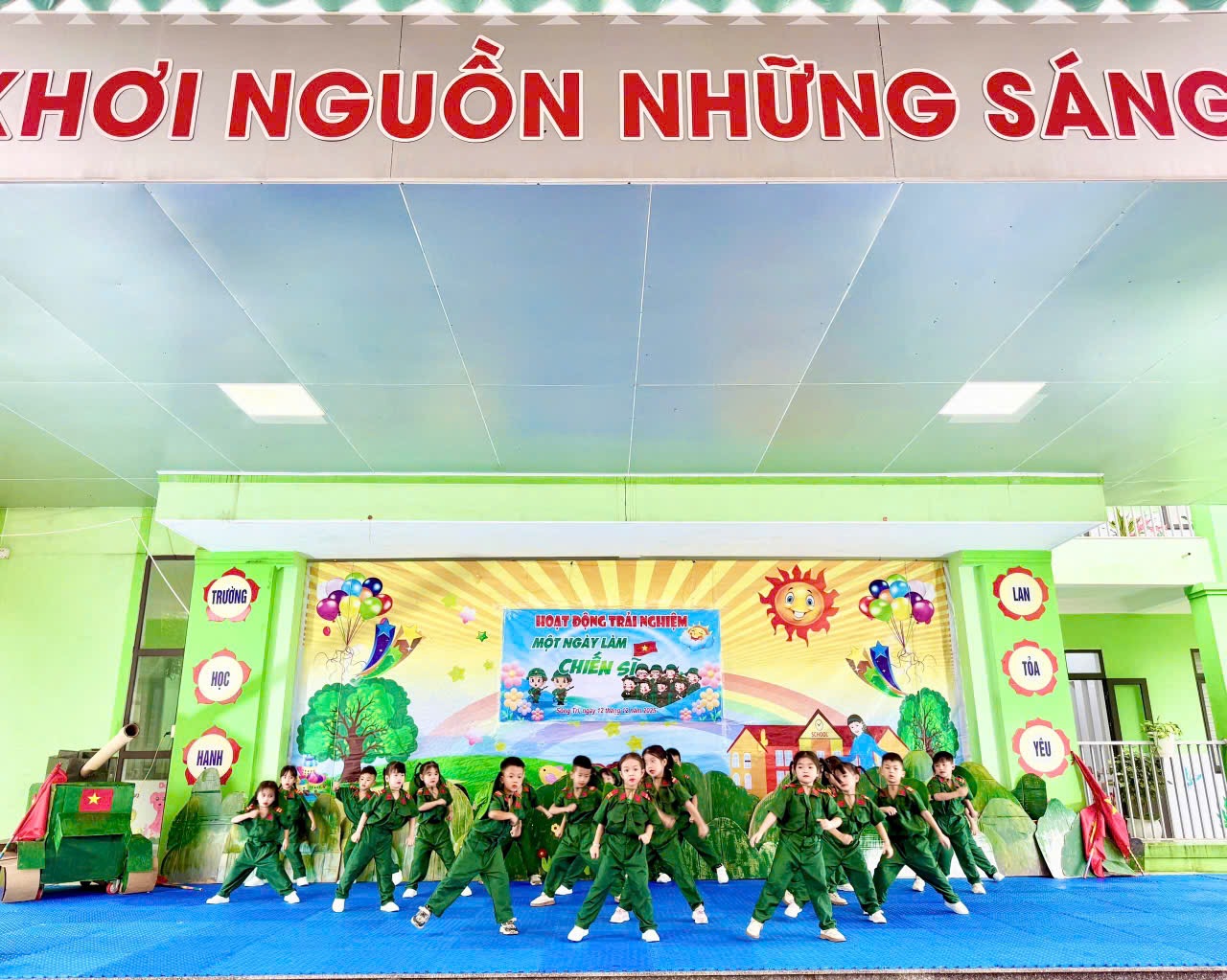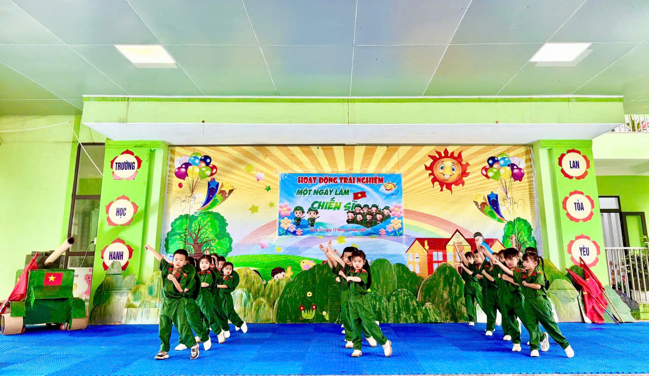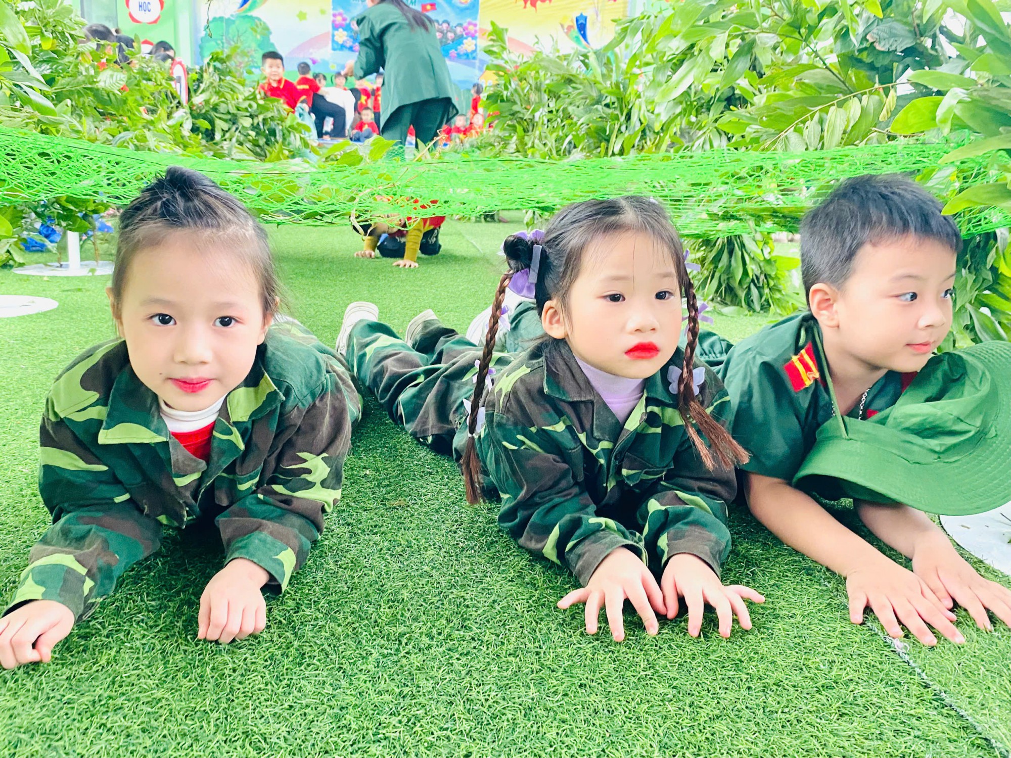 Với sự chuẩn bị chu đáo về nội dung, trang phục, đạo cụ cùng sự nhiệt huyết của tập thể giáo viên, hoạt động đã diễn ra an toàn, hào hứng và để lại nhiều ấn tượng đẹp. Hình ảnh các bé trong màu áo lính xanh, mạnh dạn vượt thử thách, nụ cười rạng rỡ khi hoàn thành nhiệm vụ chắc chắn sẽ trở thành những ký ức đáng nhớ trong tuổi thơ của các con.