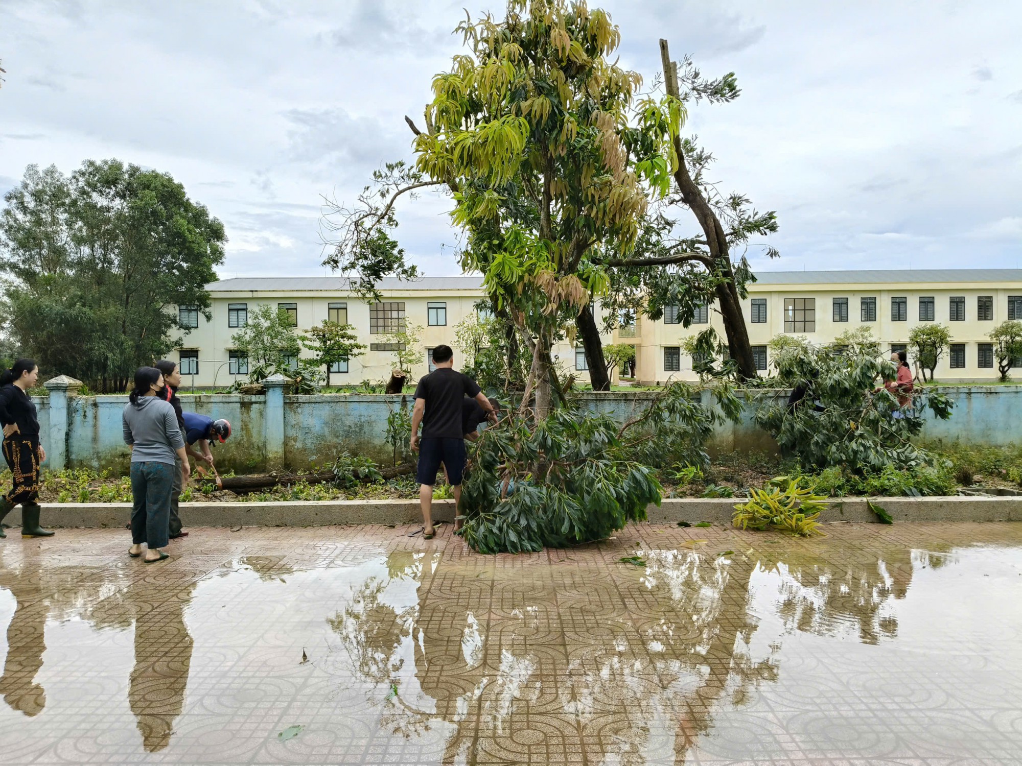 Với tinh thần trách nhiệm và sự đồng lòng, toàn thể CBGVNV cùng phụ huynh và sự hổ trợ của các Dượng đã nhanh chóng bắt tay vào công tác khắc phục. Mọi người chung tay quét dọn sân trường, thu gom rác thải, cắt tỉa những cành cây, dựng lại những cây bị gãy đổ, xích đu, cầu trượt được thuê thợ đến để sửa chữa lại bảo đảm an toàn. Những bàn tay nhỏ bé nhưng đầy nhiệt huyết đã góp sức để sân trường trở nên sạch sẽ, an toàn. Tiếng chổi xào xạc, tiếng cười nói rộn ràng đã xua tan sự nặng nề của hậu quả sau bão, các phòng học được lau chùi, bàn ghế được sắp xếp lại gọn gàng ngăn nắp