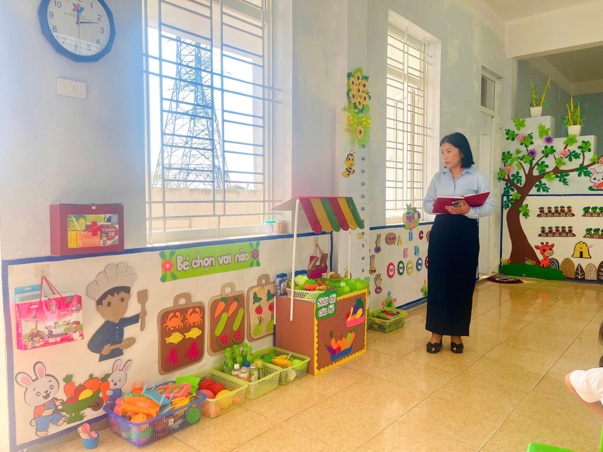 Đồ dùng, đồ chơi, nguyên vật liệu, học liệu có giá đựng ngăn nắp, gọn gàng, để ở nơi trẻ dễ thấy, dễ lấy, dễ dùng, dễ cất. Đồ dùng, đồ chơi, nguyên vật liệu được thay đổi và bổ sung phù hợp với mục tiêu chủ đề/hoạt động và hứng thú của trẻ.