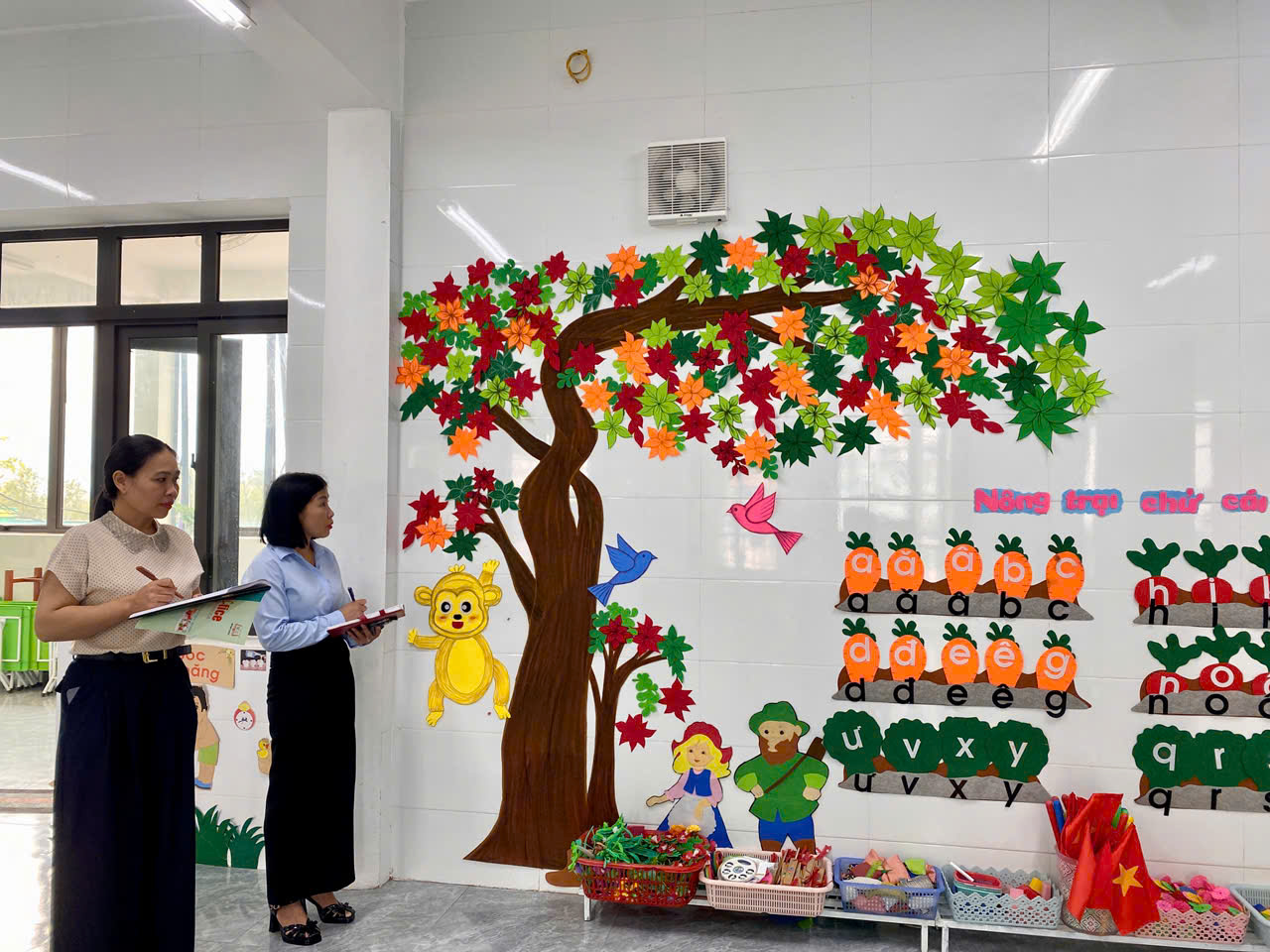 Thực hiện kế hoạch chuyên môn số189/KHCM- TrMN Kỳ Trinh, Hưởng ứng chào mừng ngày Quốc tế Phụ nữ. Sáng ngày 10 tháng 10 năm 2025 BGH nhà trường phối hợp Tổ chuyên môn tổ chức chấm đồ dùng, đồ chơi tự làm và trang trí lớp cùng cây xanh ở các khối lớp Nhà trẻ và Mẫu giáo.