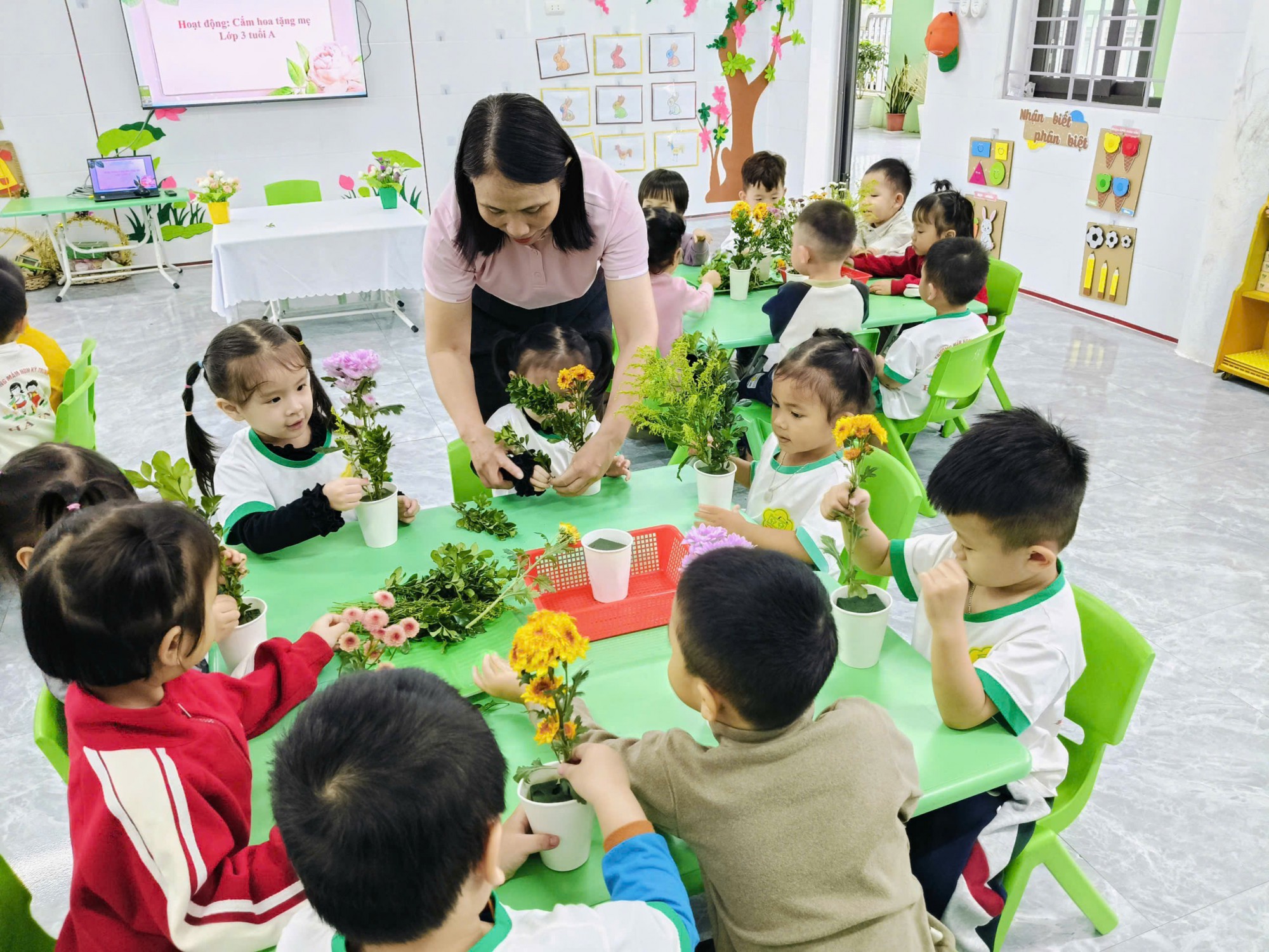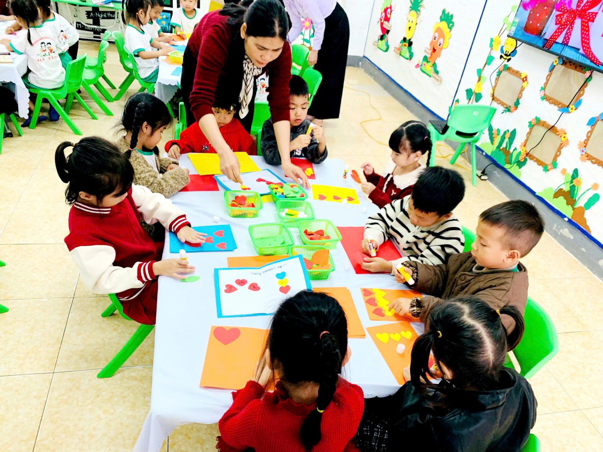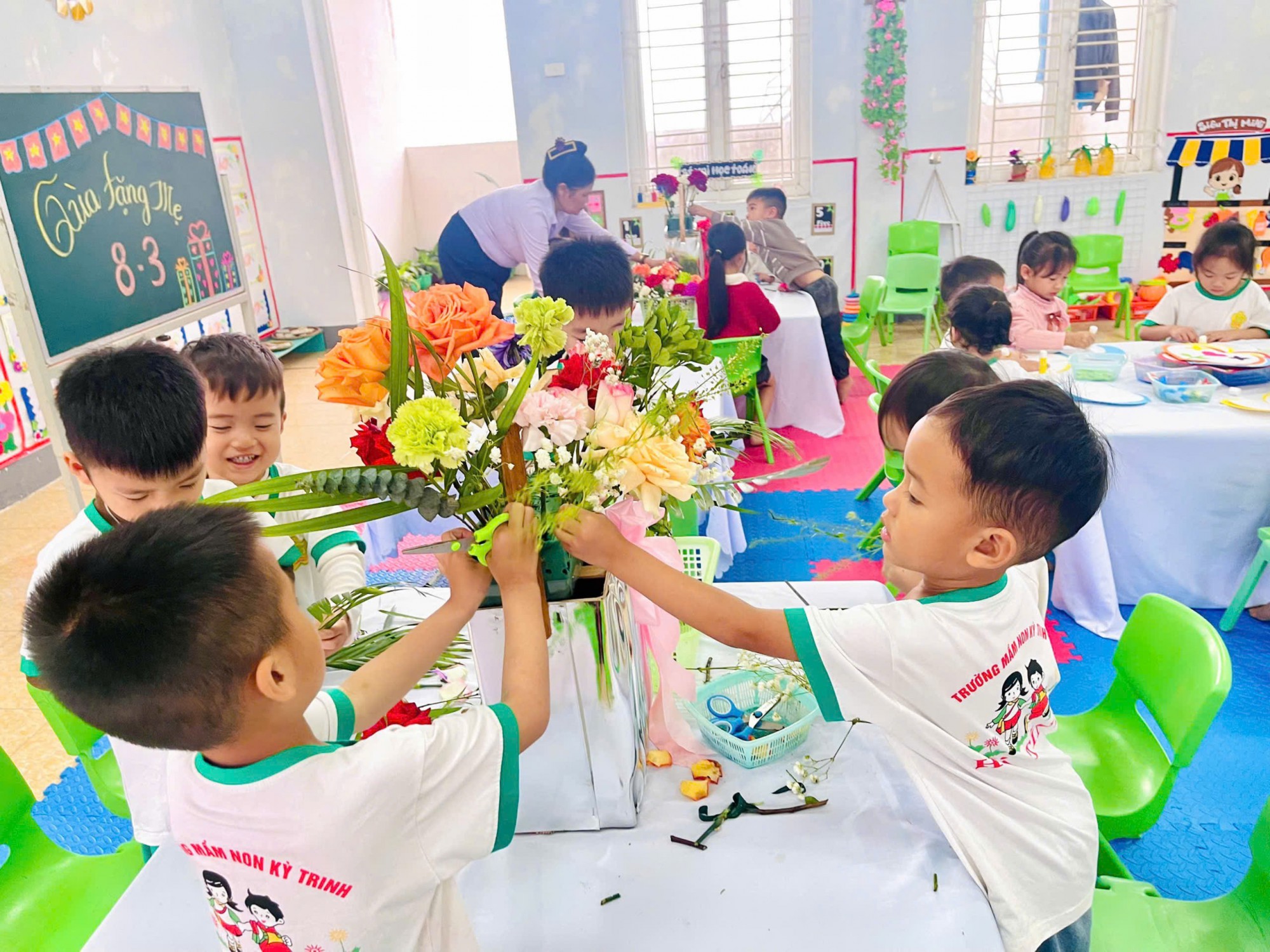 Các hoạt động không chỉ giúp trẻ hiểu thêm về ý nghĩa của ngày 8/3 mà còn bồi dưỡng tình cảm yêu thương, kính trọng dành cho bà, mẹ và cô giáo.