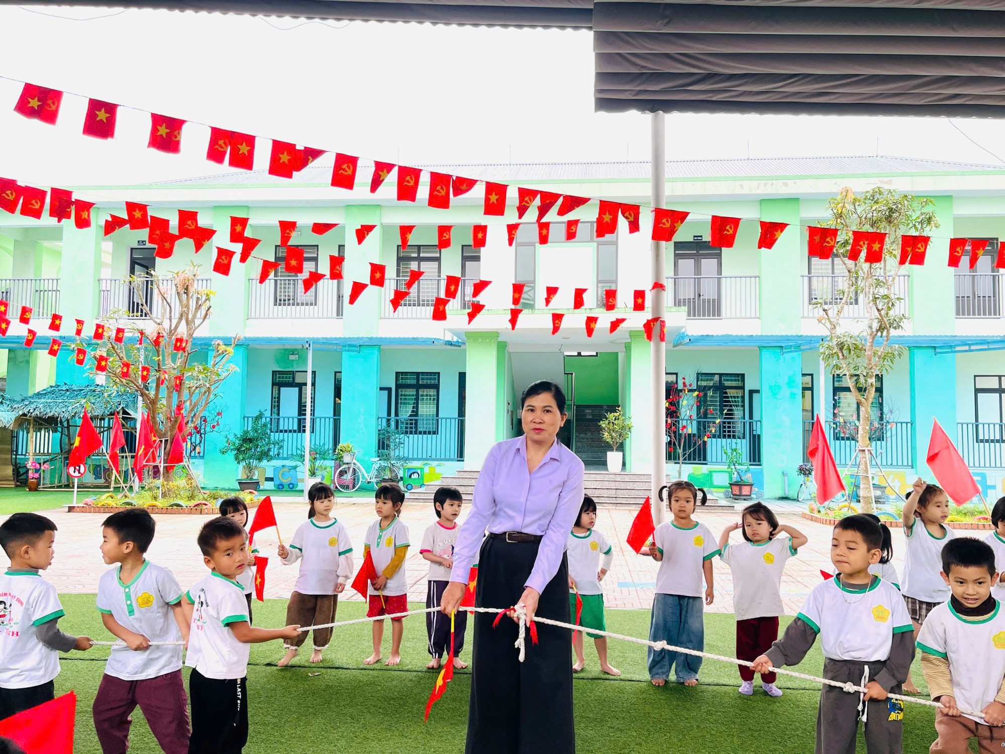 Bên cạnh đó, ở lĩnh vực phát triển thể chất và tình cảm – kỹ năng xã hội, các lớp tổ chức các trò chơi vận động, giao lưu văn nghệ, múa hát chào mừng ngày 8/3. Không khí trong trường trở nên rộn ràng, vui tươi với tiếng cười của các bé.