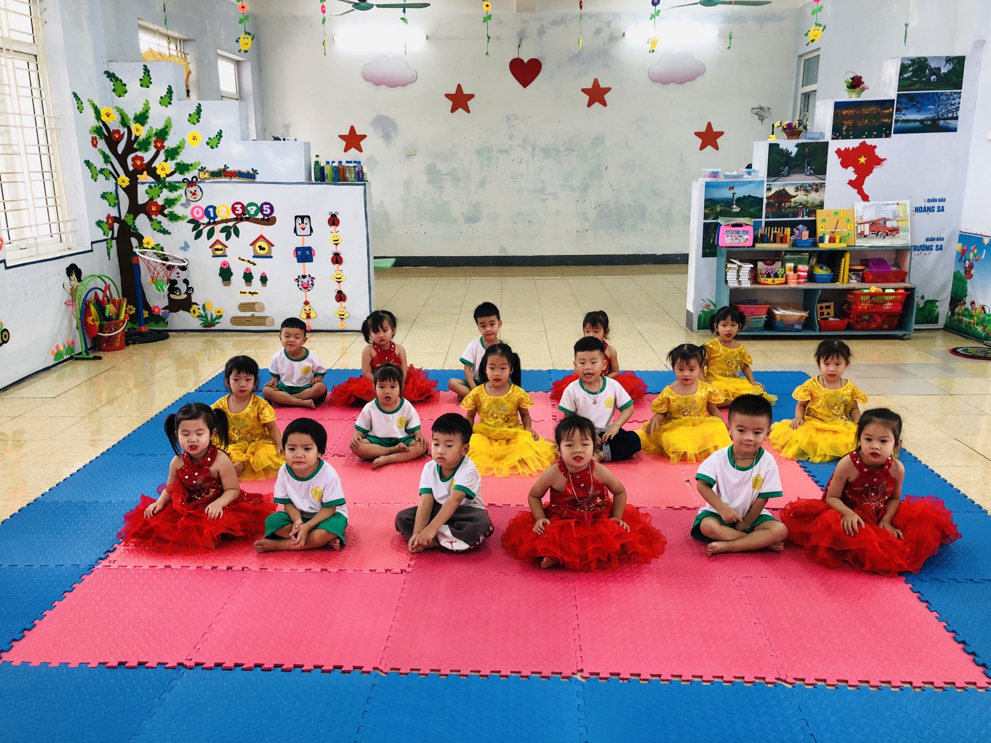 Ở lĩnh vực phát triển thẩm mỹ, các bé được tham gia các hoạt động tạo hình như: vẽ tranh, tô màu, làm thiệp, làm hoa tặng bà, tặng mẹ và cô giáo. Những sản phẩm nhỏ xinh do chính tay các bé thực hiện tuy giản dị nhưng chứa đựng tình cảm yêu thương chân thành.