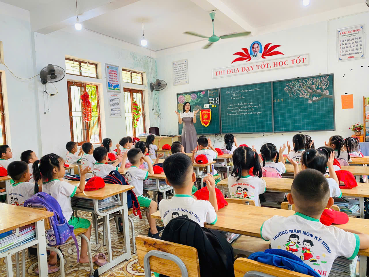 Thực hiện kế hoạch năm học 2025-2026, ngày 21 và 22/4/2026 Trường Mầm non Kỳ trinh tổ chức cho trẻ 5 tuổi tại 2 cụm Quyền Thượng và Hòa Lộc tham quan tại Trường tiểu học Kỳ Trinh. Nhằm giúp trẻ mẫu giáo 5 tuổi có sự chuẩn bị tốt về tâm thế trước khi bước vào lớp 1. Đây là một hoạt động ý nghĩa, thiết thực, giúp trẻ bước đầu làm quen với môi trường học tập mới.