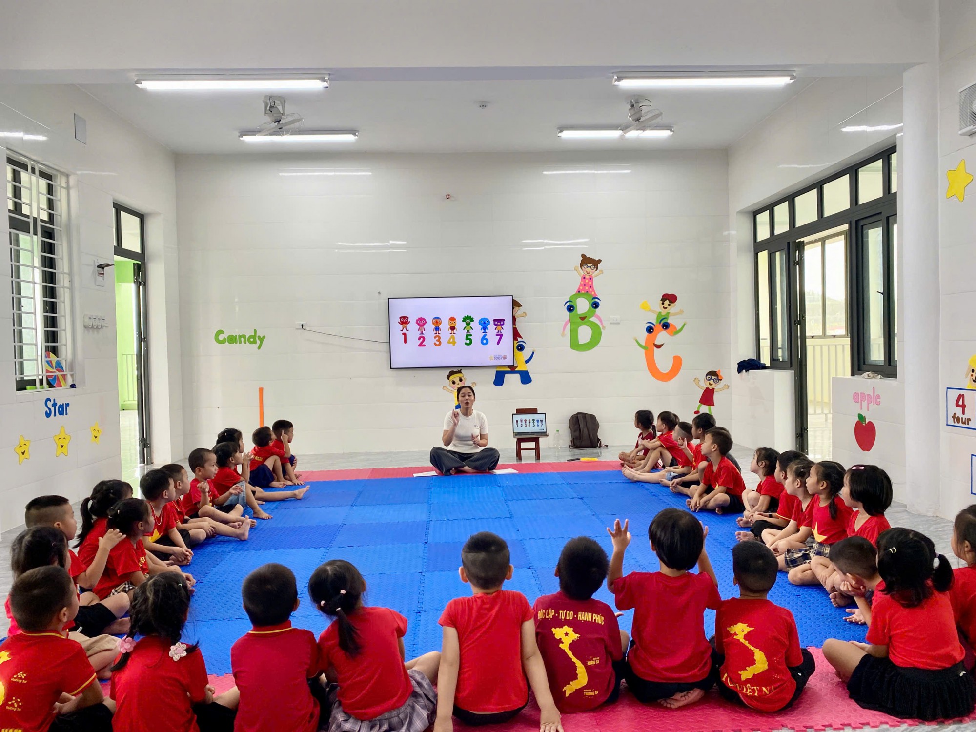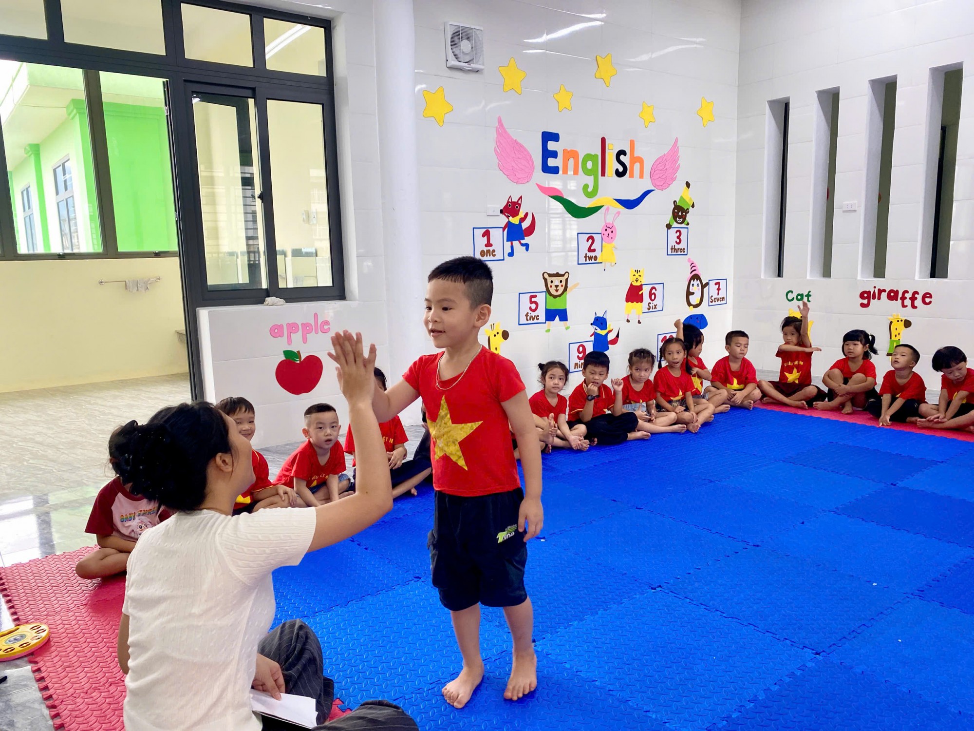 Buổi học được cô giáo tổ chức thông qua trò chơi, bài hát, hình ảnh sinh động và những tình huống giao tiếp gần gũi, giúp trẻ dễ dàng ghi nhớ và mạnh dạn hơn khi sử dụng các từ tiếng Anh quen thuộc.